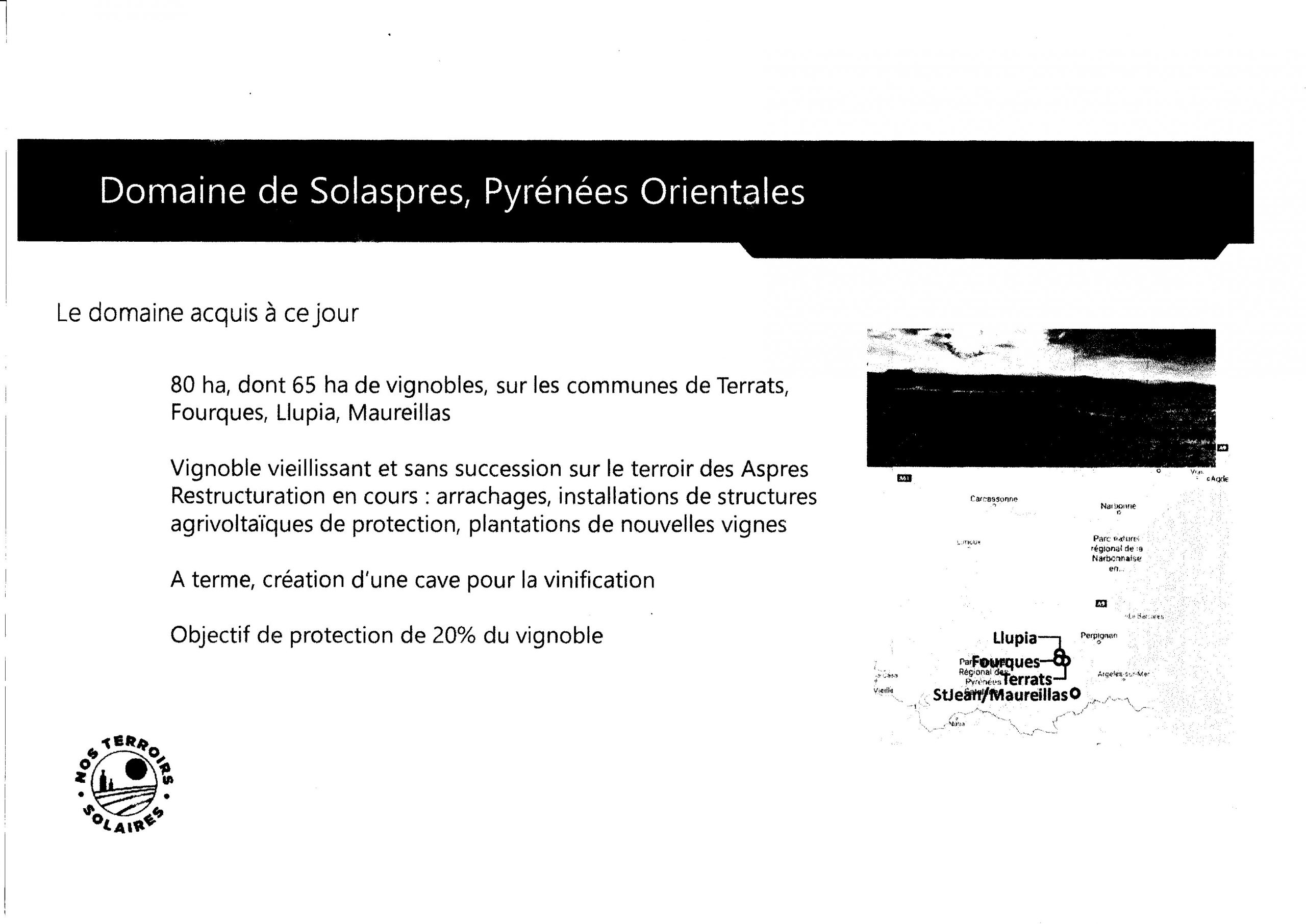 Il conclut: « Je vous cache que j’attends avec impatience le retour de ma collègue pour savoir si elle a eu connaissance de ces projets, car c’est un sujet intéressant et c’est vrai que l’AOC Villages des Aspres c’est quand même un très beau terroir, c’est un vrai sujet. Est-ce que vous êtes convié et avez l’invitation de Sun ‘Agri à Lluppia ? »