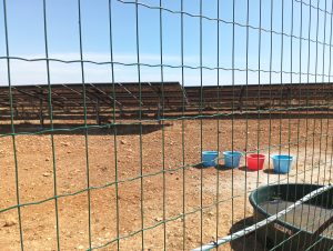 – Une brebis s’est fait prendre par le mécanisme oscillant des panneaux et est décédée, soit par le système mécanique, soit de faim ou de soif.