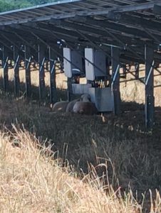 Charente, Chassieq, brebis dormant sous les onduleurs